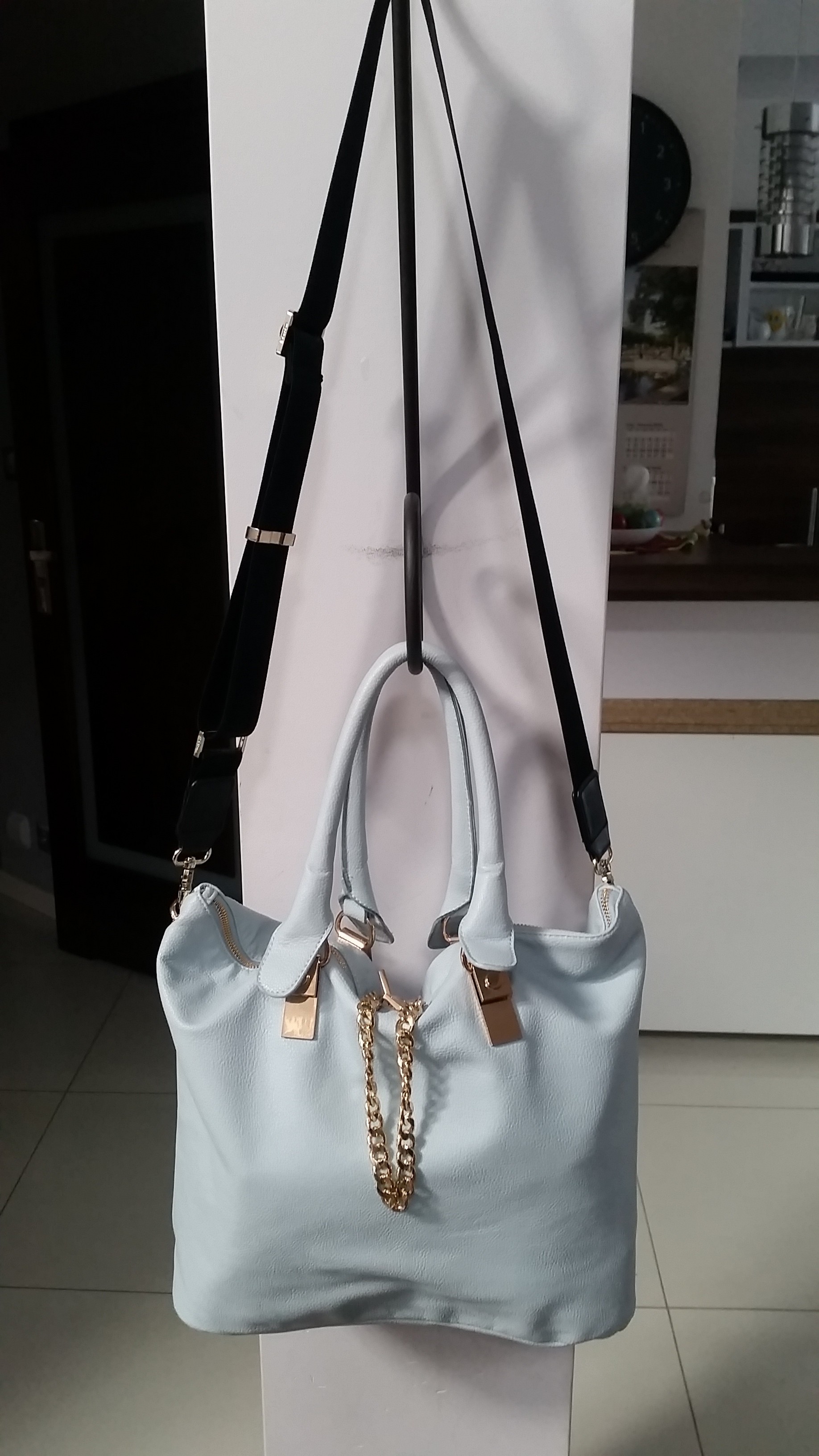 Kochani, projektowanie to nie taka prosta sprawa. Muszę nauczyć się jak przenieść myśli na papier, potem na wykrój, a realizacja to chyba najtrudniejszy etap. Zaczęłam od nauki rysunku . Nauka o tyle trudna, że mam przy sobie synka, kota i inne tym podobne, ale zanim umieszczę pierwsze projekty podzielę się moim pomysłem na nietuzinkową, błękitną torebkę w stylu Chanel. Znalazłam interesujący model w sklepie Mohito. Banalny pasek sprawiał, że wydawała się zwykła i przeciętna, ale potrzeba matką wynalazku. Wystarczyło przepięcie paska z innej torebki – czarny materiałowy – efekt zaskakująco dobry i oryginalny, po prostu „inny”, ciekawy.